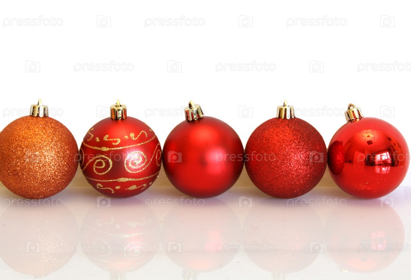 Красные елочные шарики на белом фоне