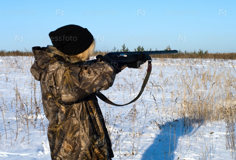 Девушка-охотник в зимнем поле