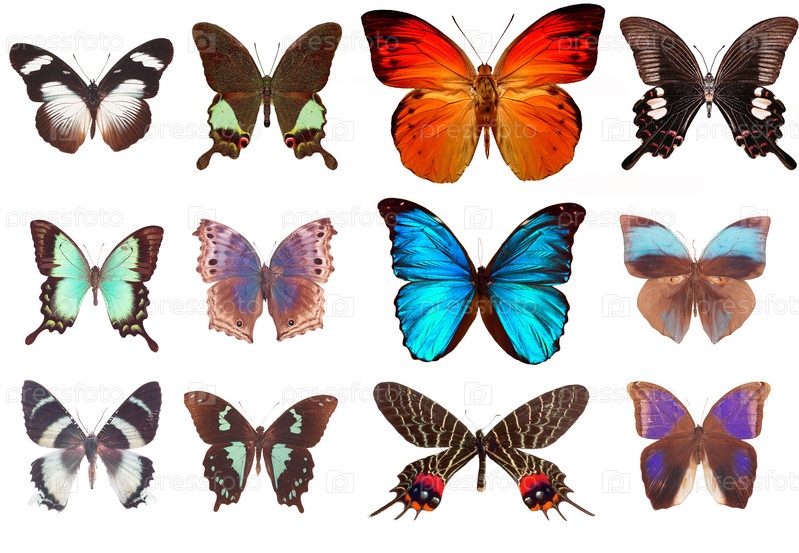 Бабочки, изолированы на белом