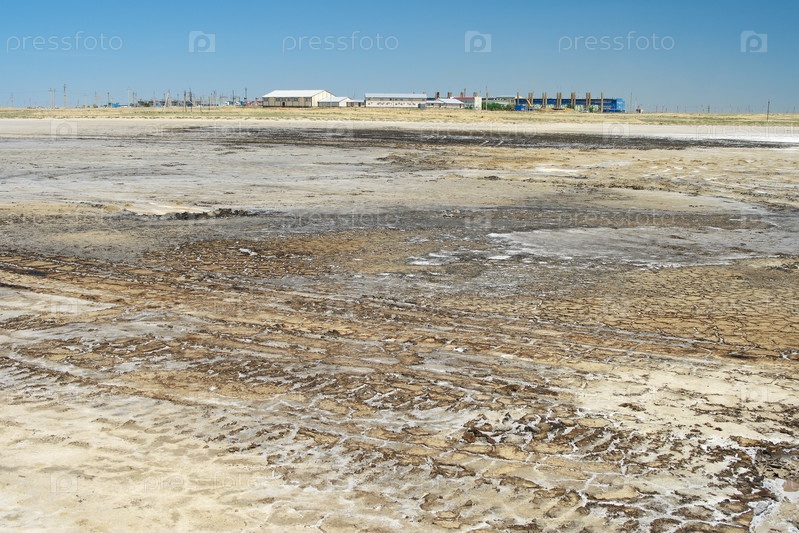 Рабочий поселок и компрессорная станция для перекачки газа на берегу соленого озера