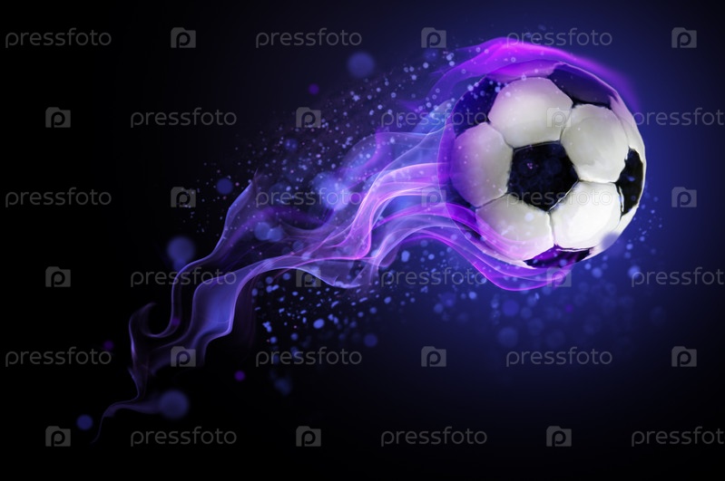 Футбольный мяч, горящий синим пламенем