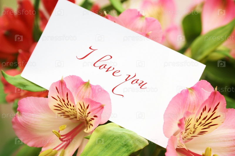 Карточка в цветах с любовными словами