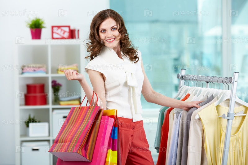 Девушка совершает покупки в магазине одежды
