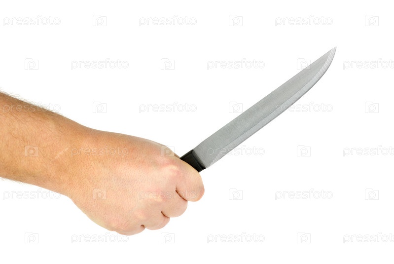 Рука с ножом на белом фоне
