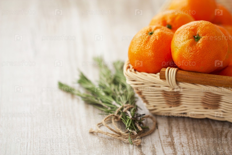 Мандарины в плетеной корзине