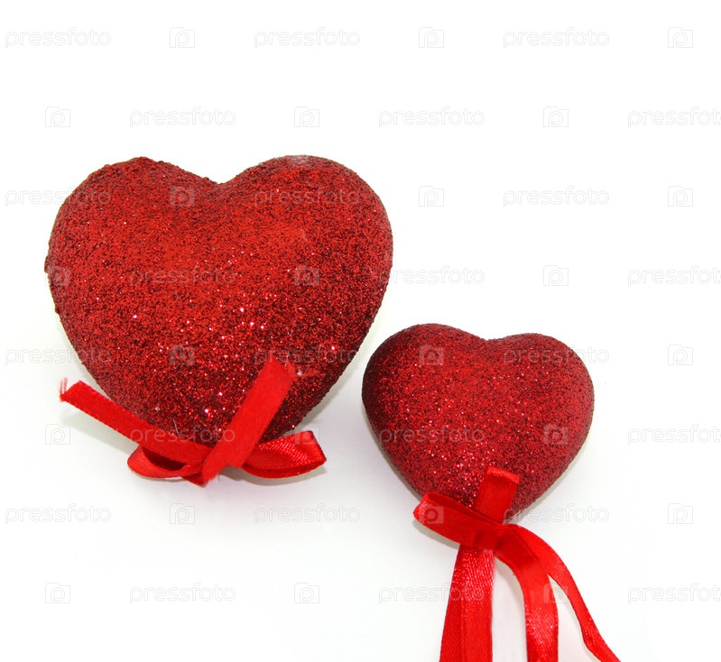 Два красных сердца на белом фоне