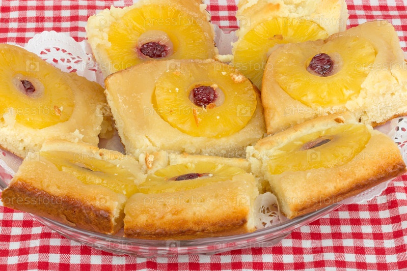 Домашний бисквитный пирог с ананасом