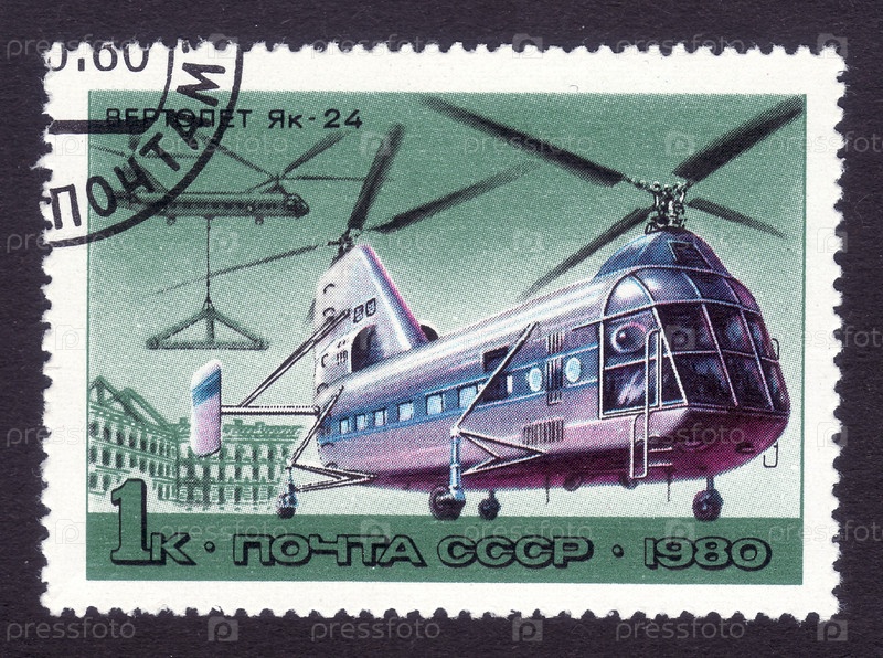 Почтовая марка СССР 1980 года, вертолет Як-24