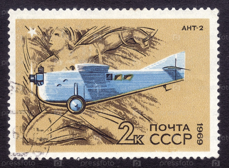 Почтовая марка СССР 1969 года, самолет АНТ-2