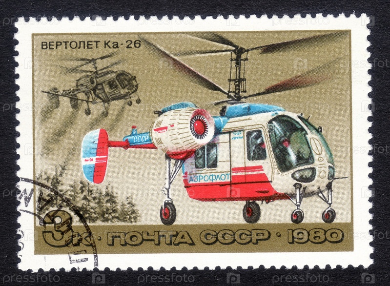 Почтовая марка СССР 1980 года, вертолет Ка-26
