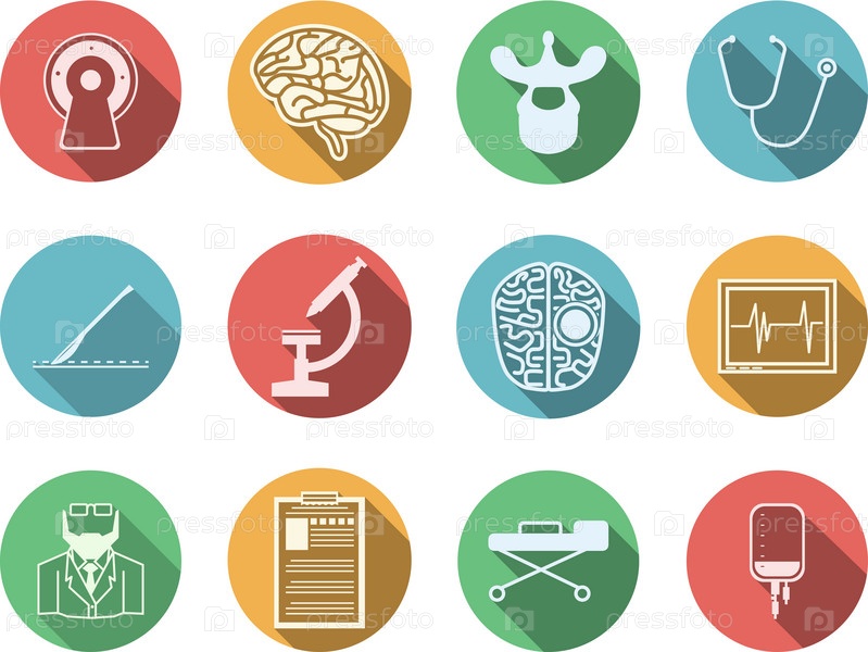 Цветные значки нейрохирургии на белом фоне