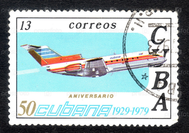 Почтовая марка, Куба, самолет