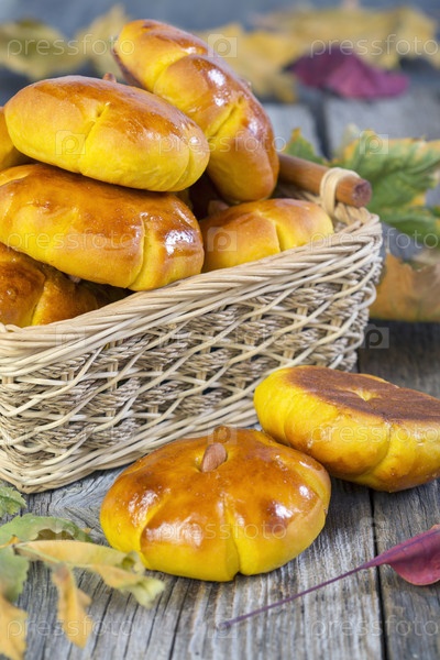 Корзина с тыквенными булочками