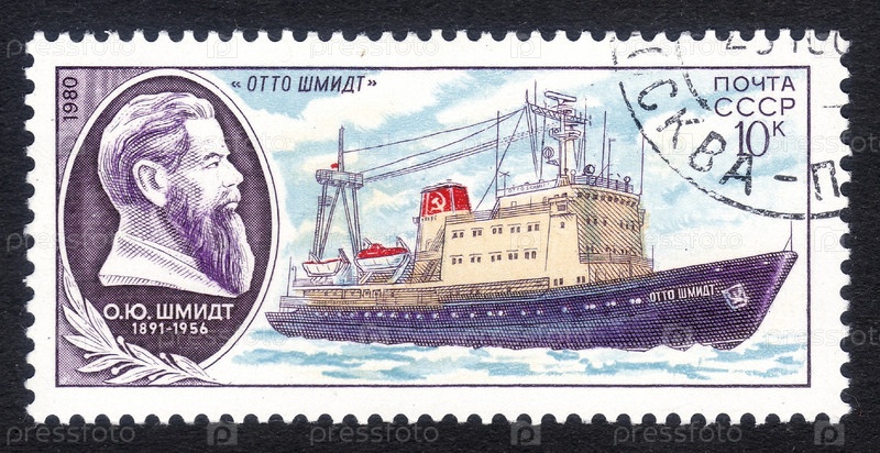 Почтовая марка СССР 1980 года, корабль "Отто Шмидт"