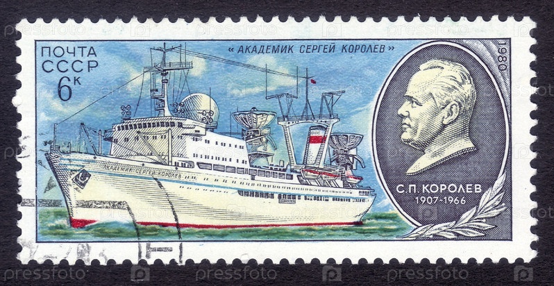Почтовая марка СССР 1980 года, корабль "Академик Сергей Королев"