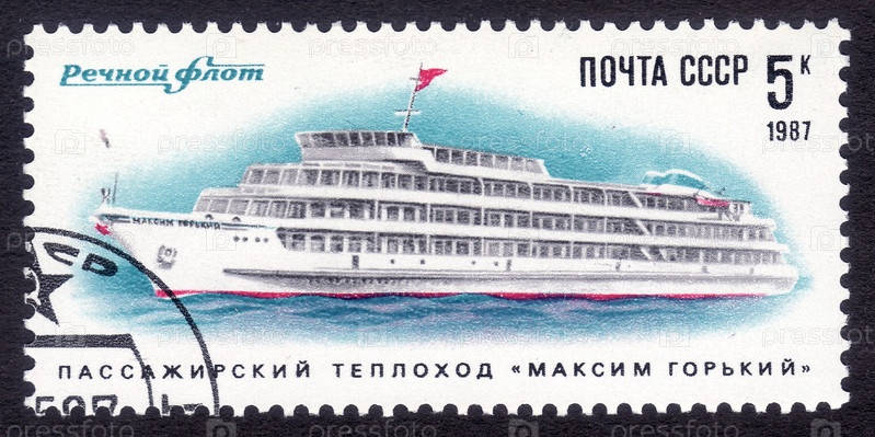 Почтовая марка СССР 1987 года, теплоход "Максим Горький"