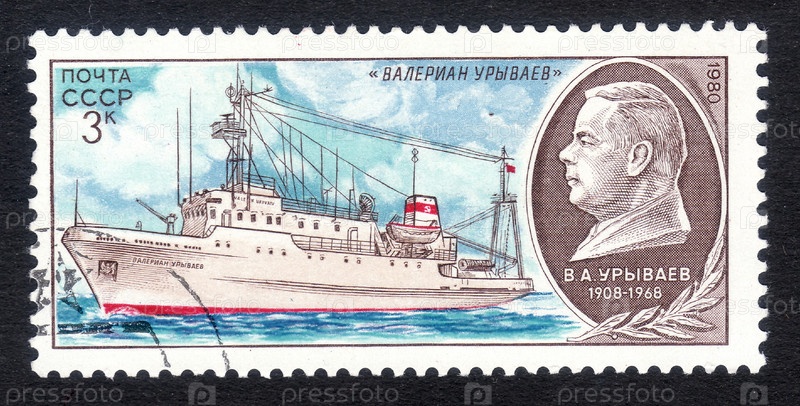 Почтовая марка СССР 1980 года, корабль "Валериан Урываев"
