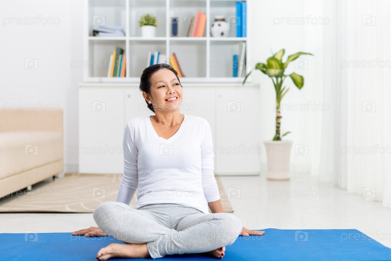 Женщина на коврике для йоги