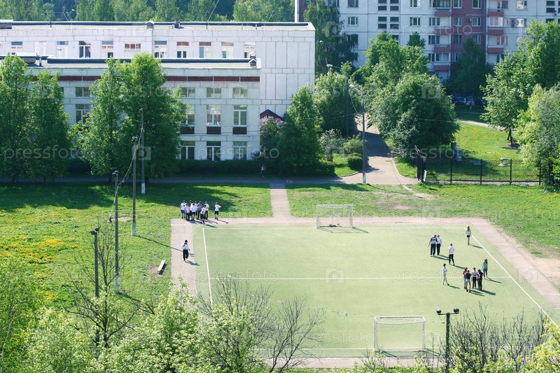Урок физкультуры на школьном стадионе