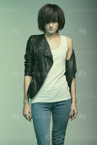 Молодая женщина позирует в студии