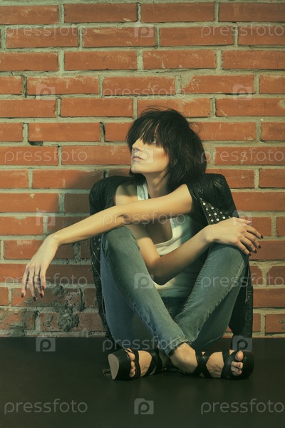 Молодая женщина позирует в студии