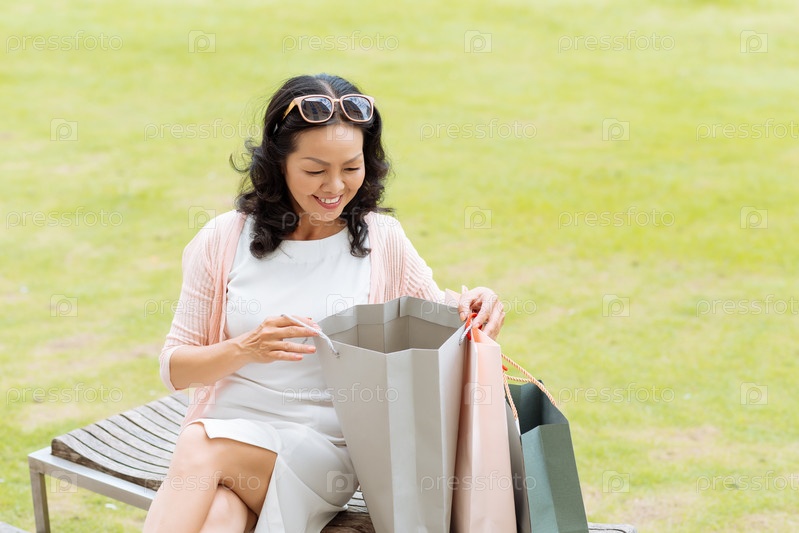 Женщина смотрит в пакет
