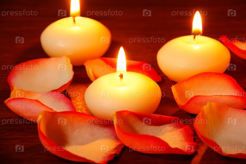 Лепестки роз и свечи