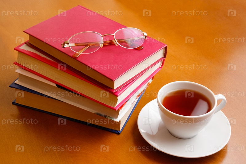 Чашка чая, очки и книги