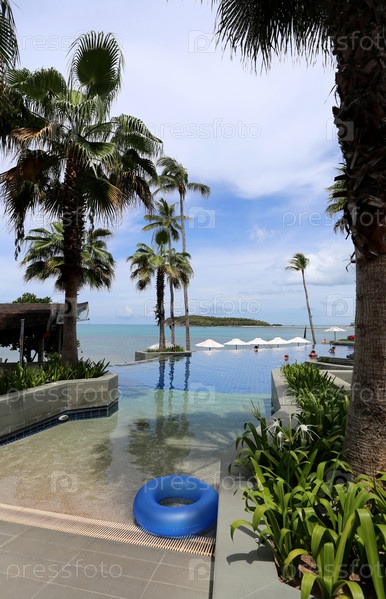 Пейзаж с пальмами и бассейном
