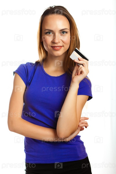 Привлекательная молодая женщина с кредитной картой
