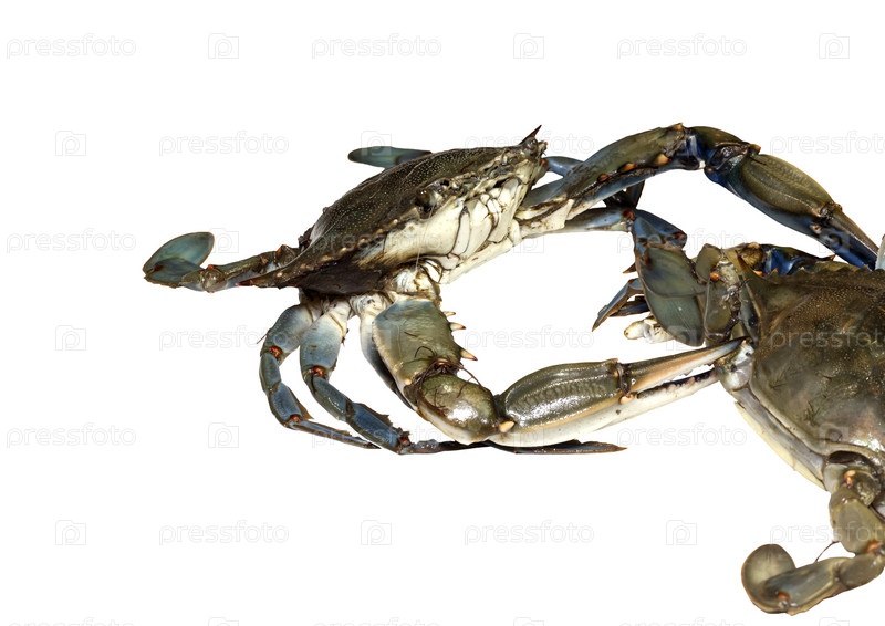 Свежие живые крабы крупным планом на белом фоне