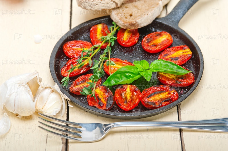Запеченные помидоры черри с базиликом и тимьяном