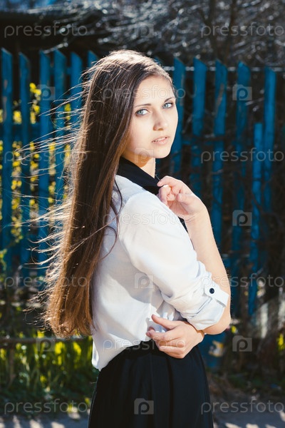 Красивая девушка позирует на улице