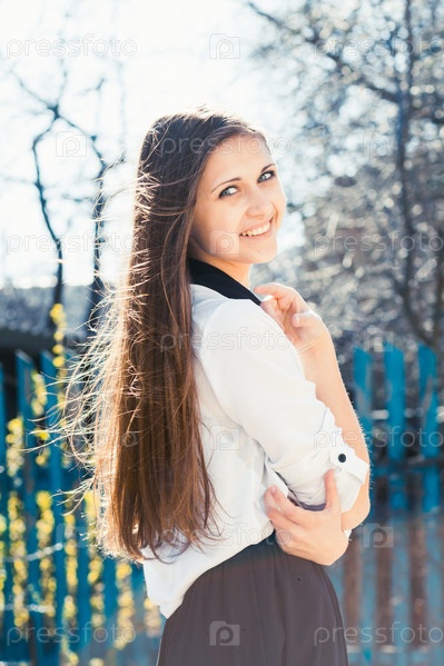 Красивая девушка позирует на улице