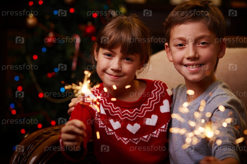 Брат и сестра с бенгальскими огнями