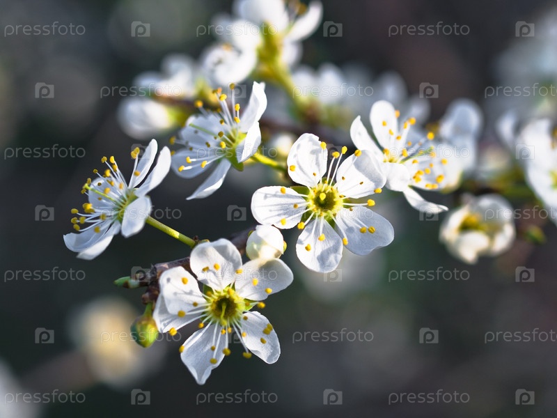 Макроцвет цветущей сливы под ярким весенним солнечным светом