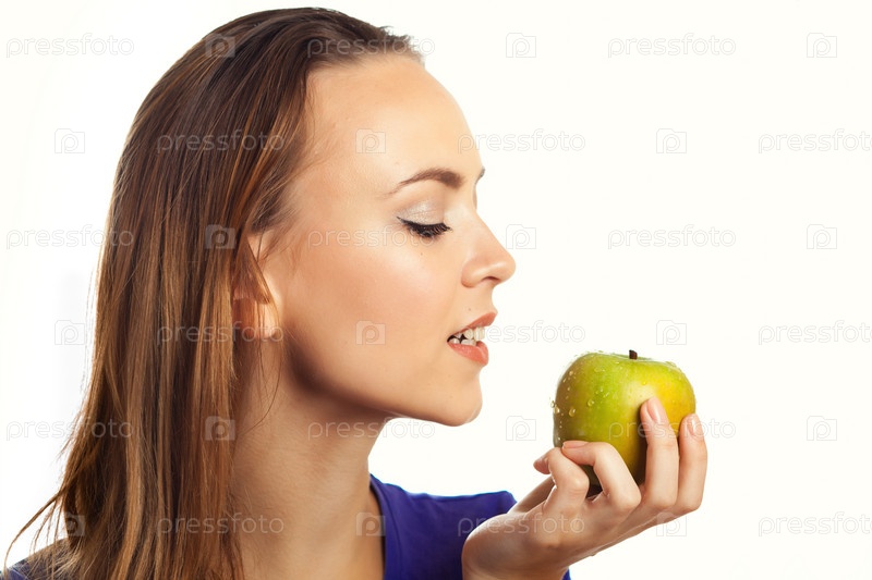 Молодая женщина с яблоком