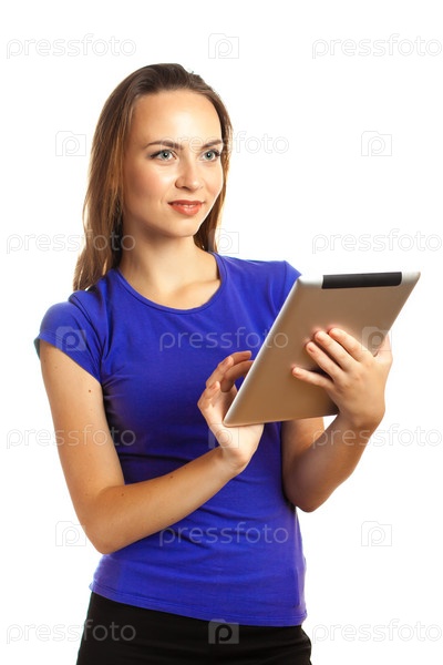 Женщина с планшетом на белом фоне