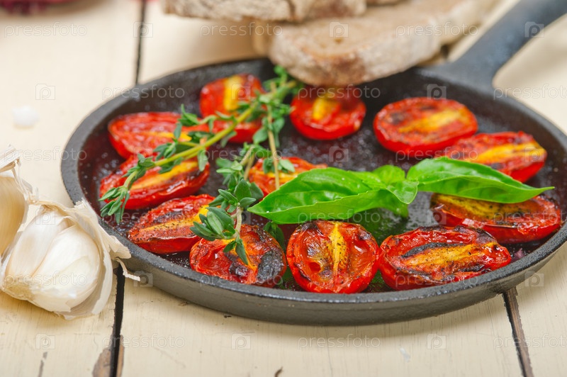 Запеченные помидоры черри с базиликом и тимьяном