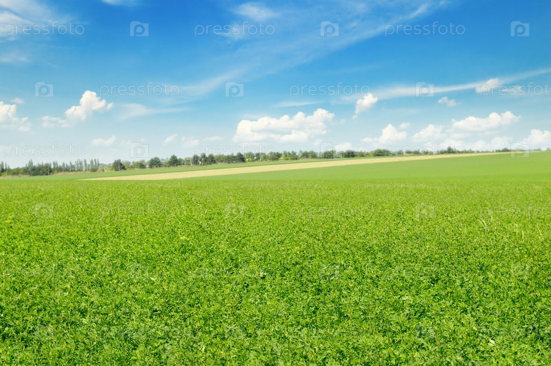 Зеленое поле и голубое небо