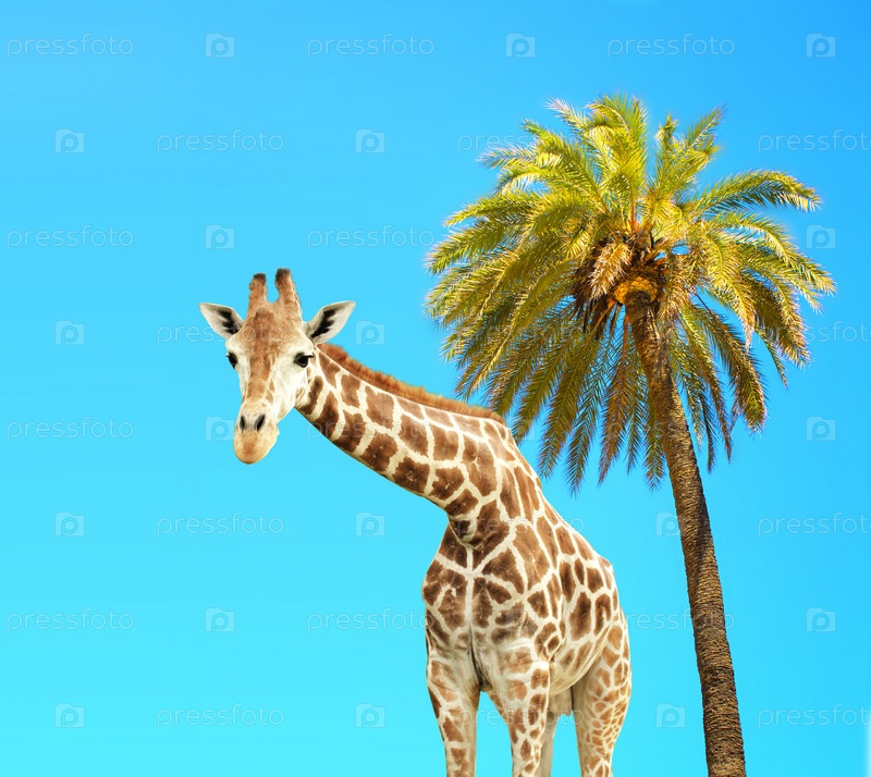 Жираф под пальмой
