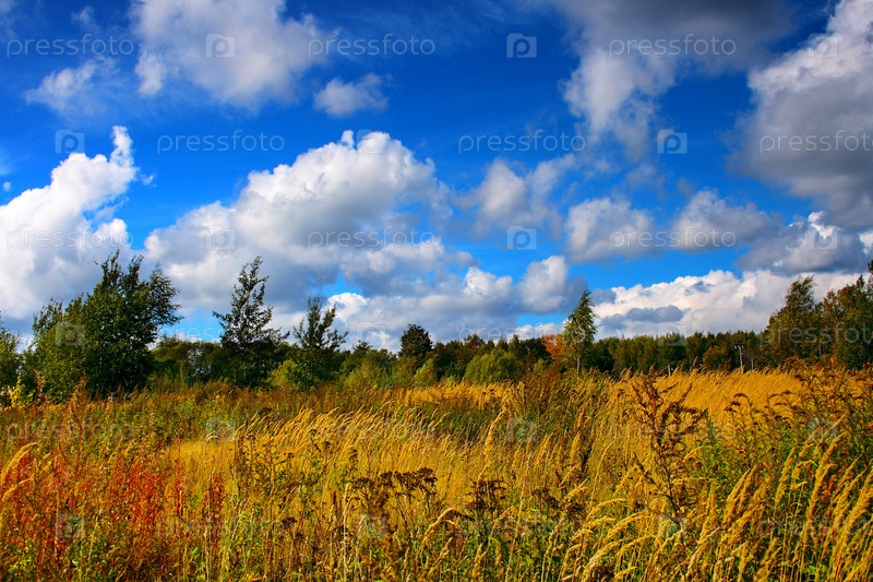 Поле и облачное небо