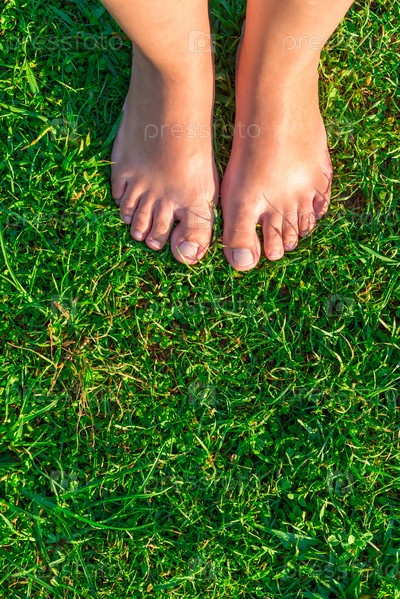 Женские ноги на зеленой лужайке