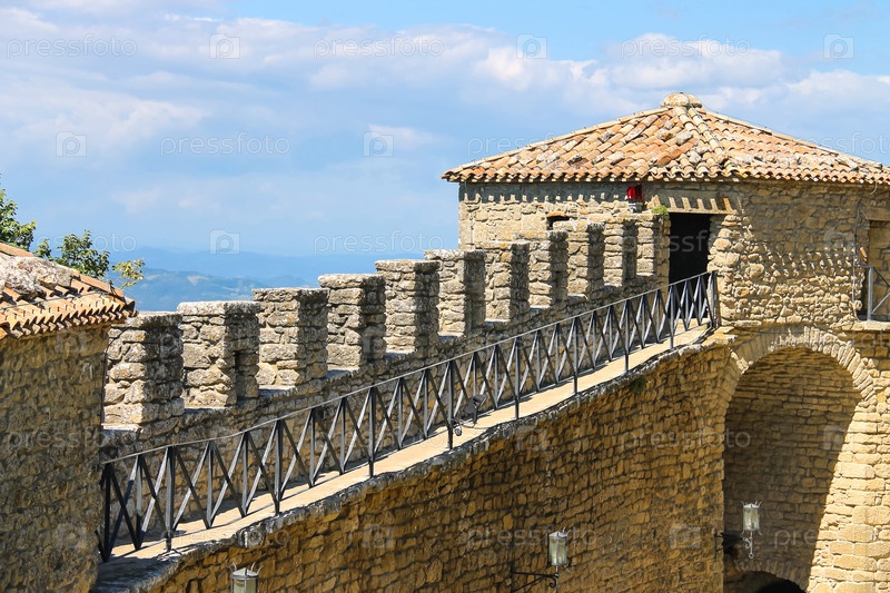 Стена крепости Гуайта на горе Титан. Республика Сан-Марино