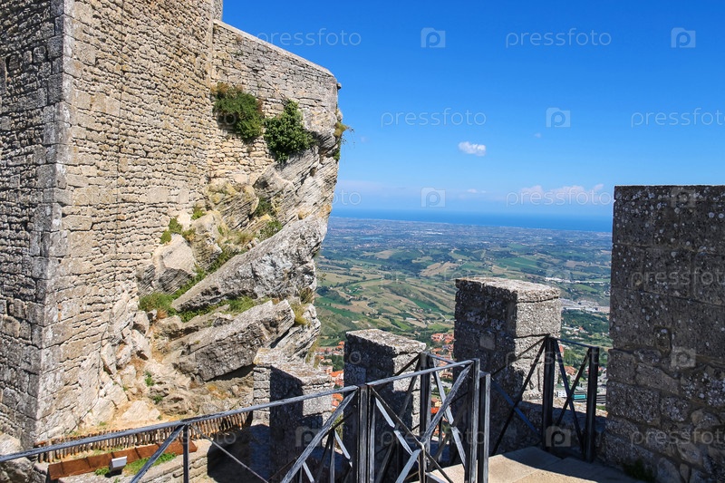 Вид на деревню изз крепости Сан-Марино. Республика Сан-Марино