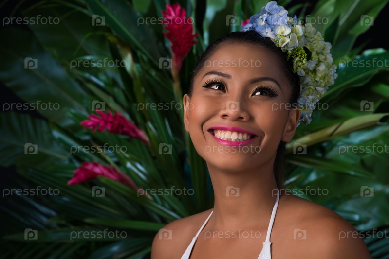 Молодая женщина в тропическом лесу