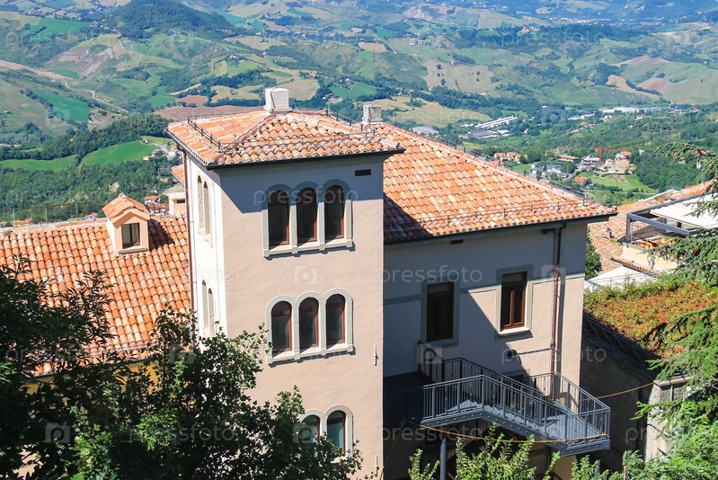 Вид на деревню из крепости Сан-Марино. Республика Сан-Марино