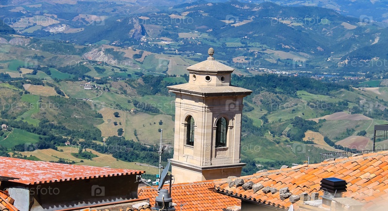 Вид на деревню из крепости Сан-Марино. Республика Сан-Марино