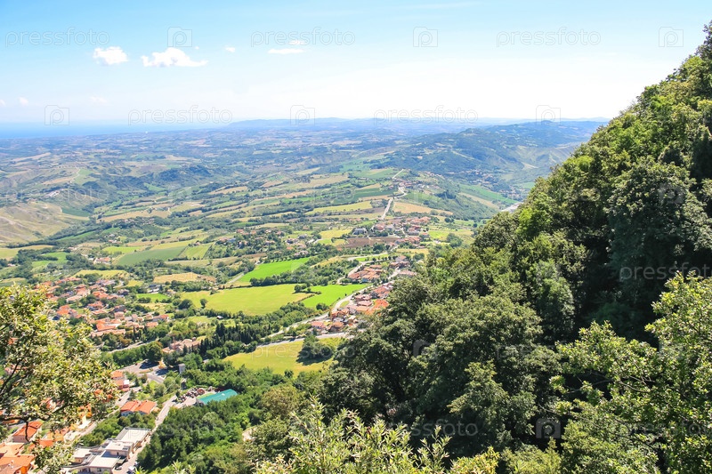 Вид на деревню из крепости Сан-Марино. Республика Сан-Марино