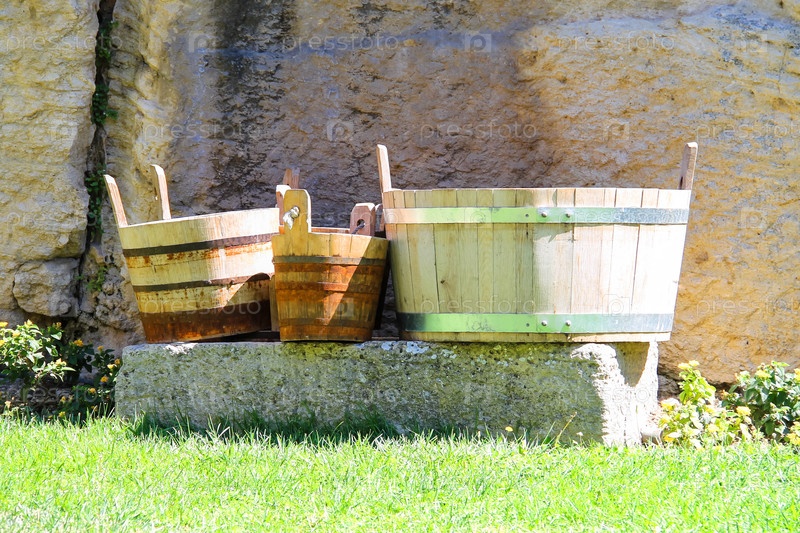 Деревянные шайки и ведро во крепости Гуайта. Сан-Марино